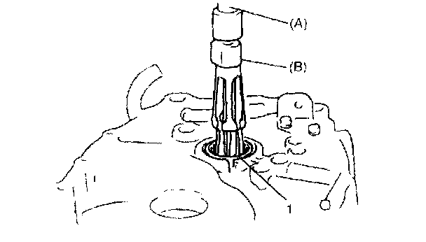4. Install input R bearing (1) by using special tool and hammer.