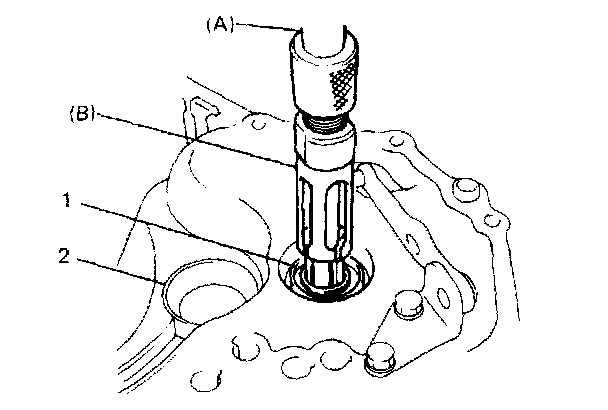 3. Remove input shaft oil seal (1) by using special tools (combination of bearing remover and sliding shaft).