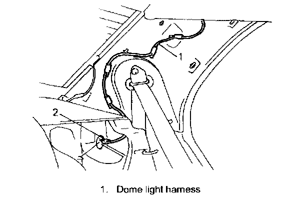 2. Fasten dome light harness lead wire on roof lining.