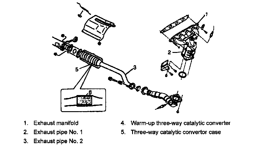 Three Way Catalytic Converter DescriptionThe three way catalytic converters (6) are provided in the exhaust system. The function of the catalyst is to reduce the emission of CO, HC and NOx in the exhaust gas by oxidizing or converting them into CO2, H2O and N2 respectively.