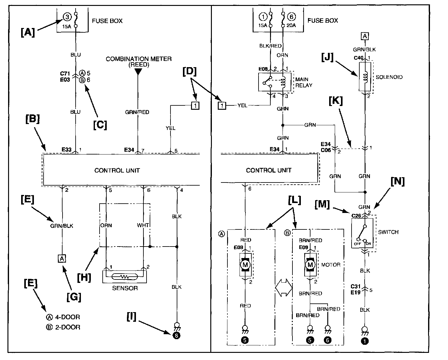The circuit diagram of each system shows the electric circuit from the main fuse, fuse box or the ignition switch (at the top in the diagram) to the ground (at the bottom) so that the circuit can be followed easily when performing inspection and service work.