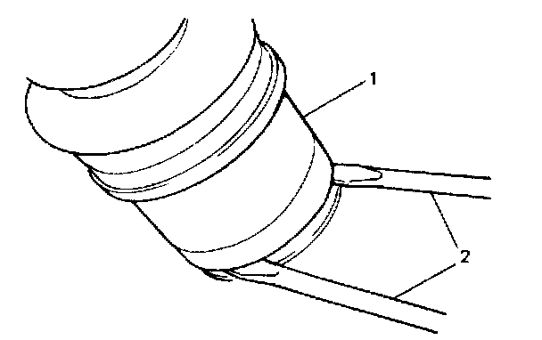 6. By using proper size rods (2), pull out drive shaft joints (1) at differential side so as to release snap ring fitting of joint. (for LH drive shaft).