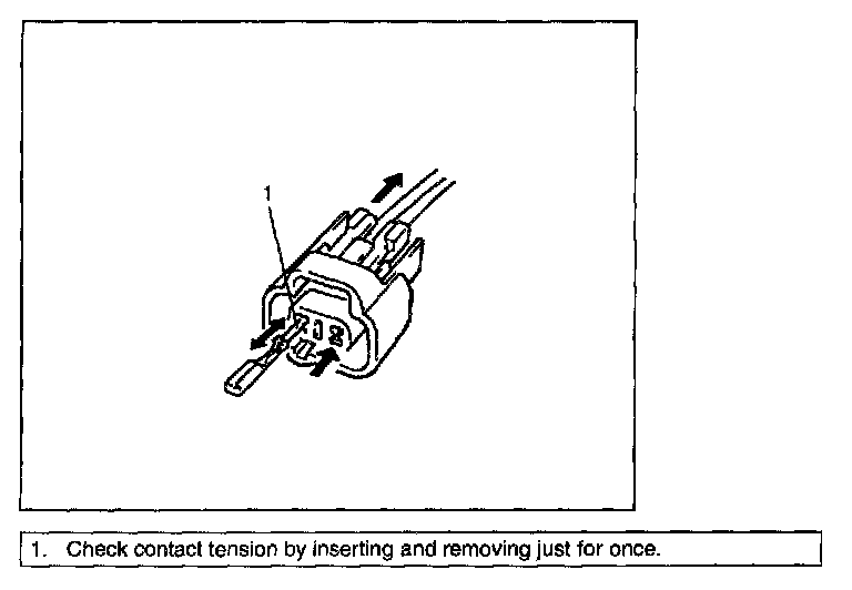 3. Using a test male terminal, check both terminals of the circuit being checked for contact tension of its female terminal.