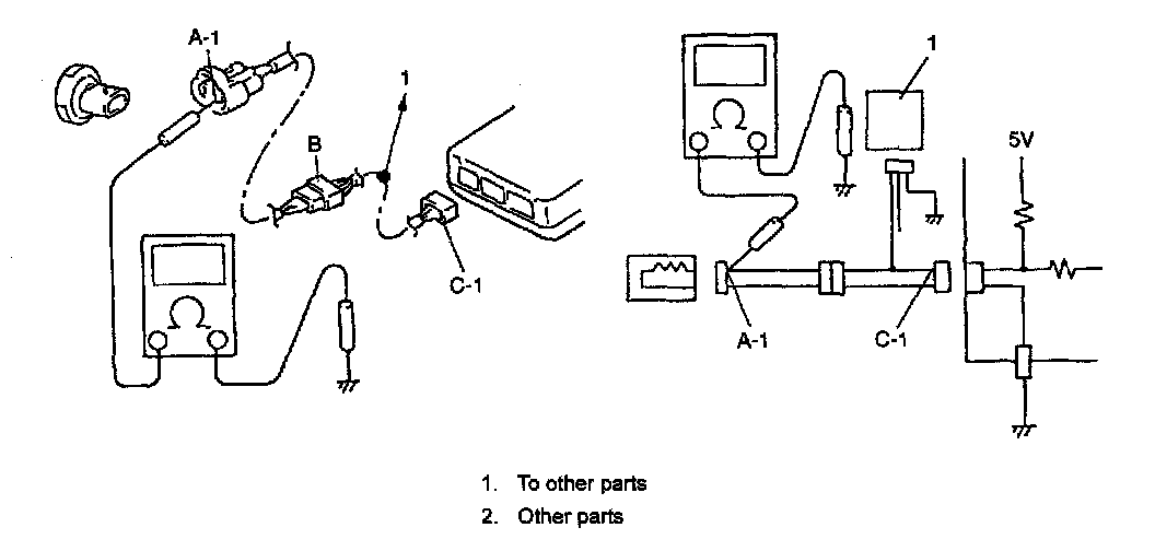 "C-1" and body ground: Approx. 5 V