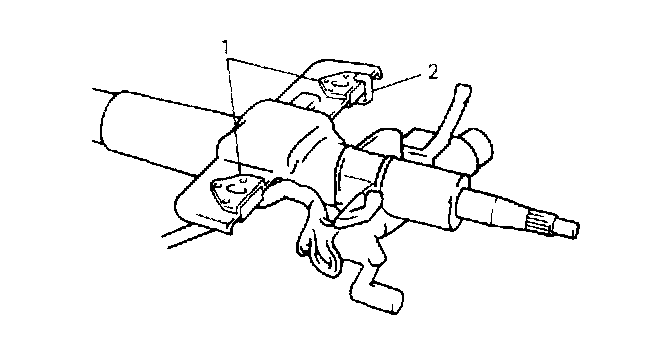 1) Check that two capsules (1) are attached to steering column bracket securely. If found loose, replace steering column assembly. Check ripping plate (2) for crack. If found defective, replace.