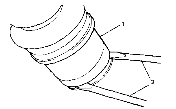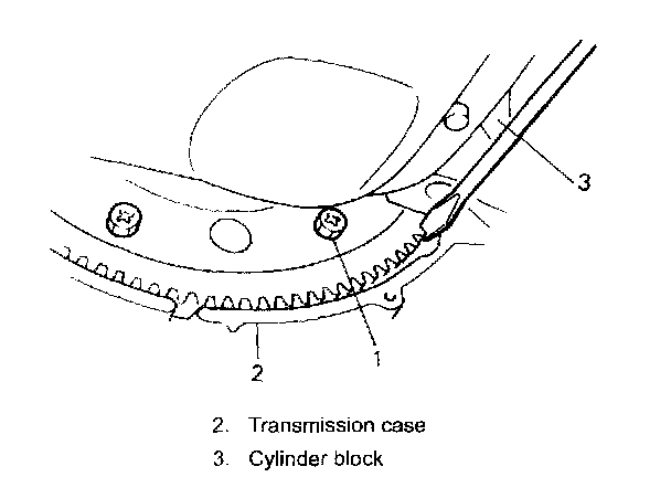6. Holding drive plate with a proper size rod against rotation, remove drive plate bolts (1).