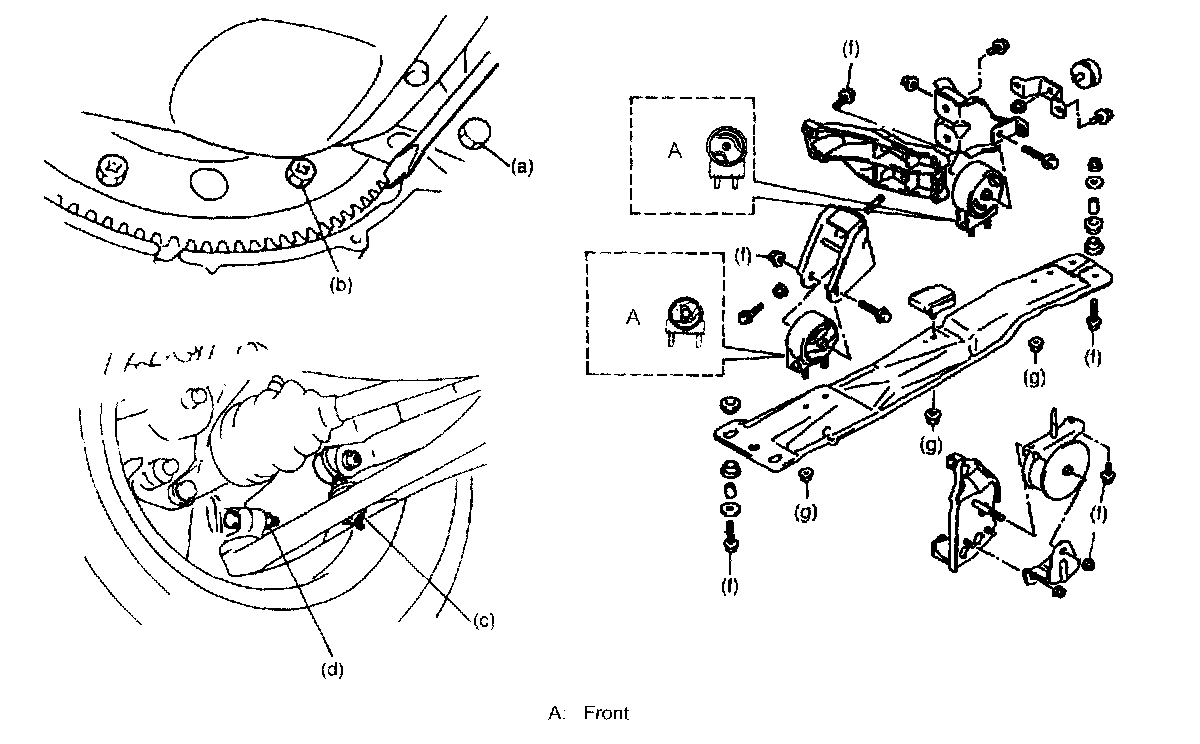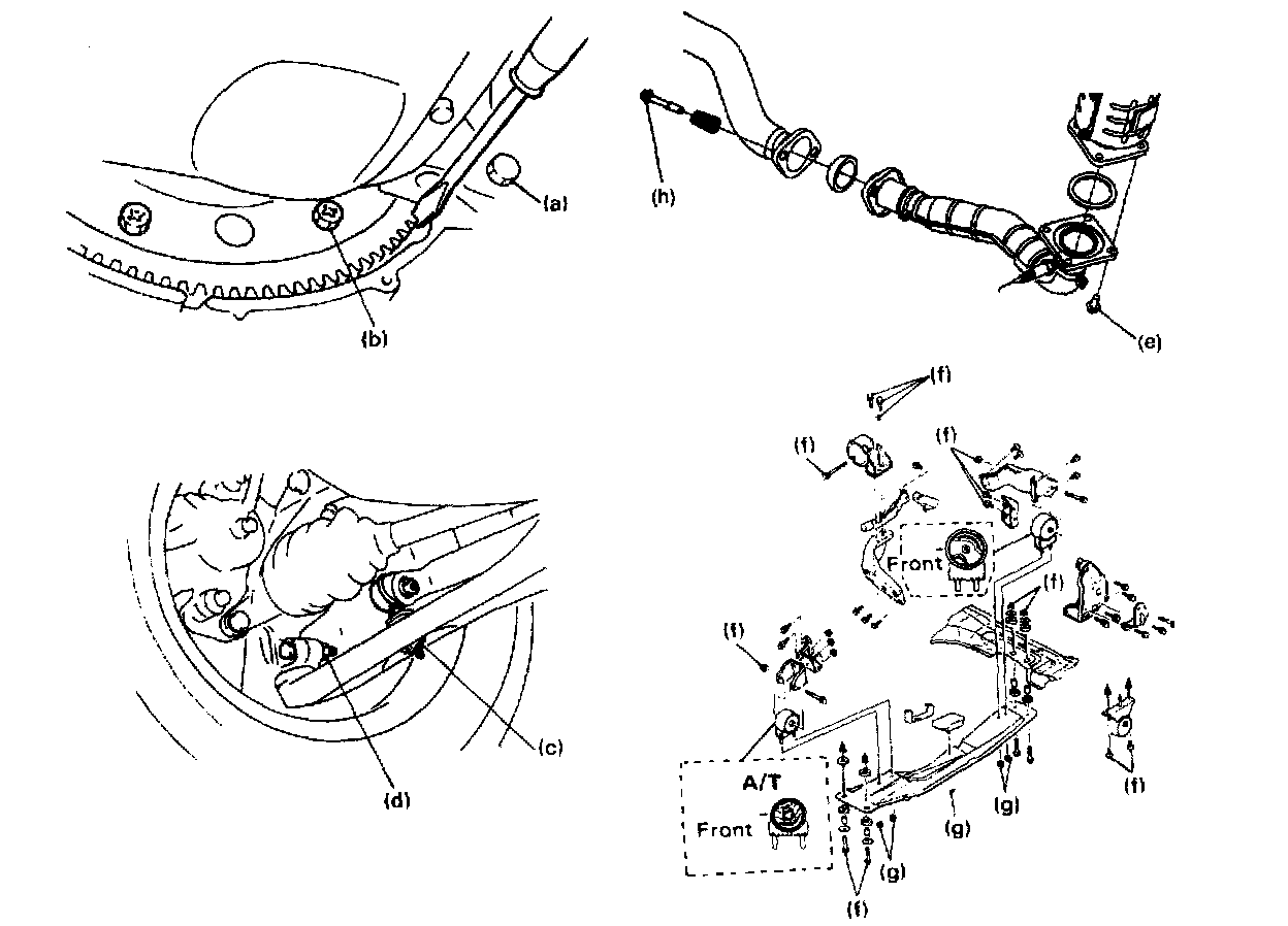 Engine mounting and mounting member bolt (f): 55 Nm (5.5 kgf-m, 40.0 ft. lbs.)