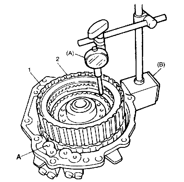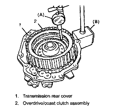 Preliminary Check1. Measure piston stroke. Install forward clutch assembly and overdrive/coast clutch assembly (2) to transmission rear cover (1).