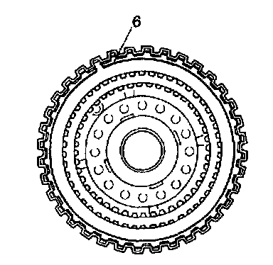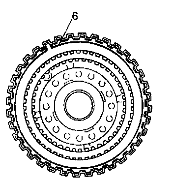 2. Remove flanges, discs and plate of coast clutch by removing snap ring (6) in the following order.
