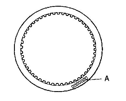 6. Remove coast clutch piston with O-rings using compressed air (400 - 800 kPa, 4 - 8 kgf/cm2, 57 - 113 psi) through oil hole (A).