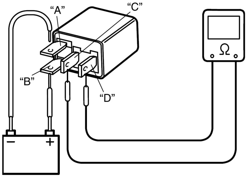 Keyless Answer Back Relay Inspection1. Check that there is no continuity between terminal "C" and "D". If there is continuity, replace relay.