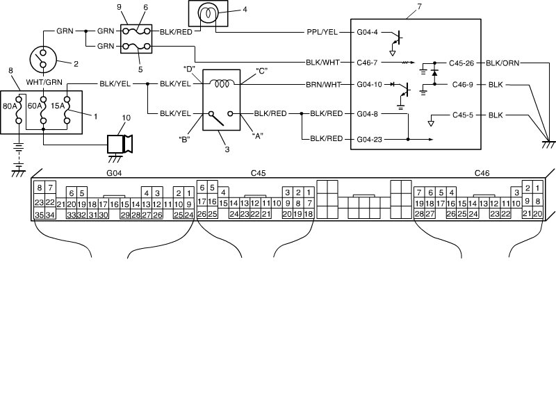 "BLK/WHT", "BLK/YEL" or "BRN/WHT" circuit open.