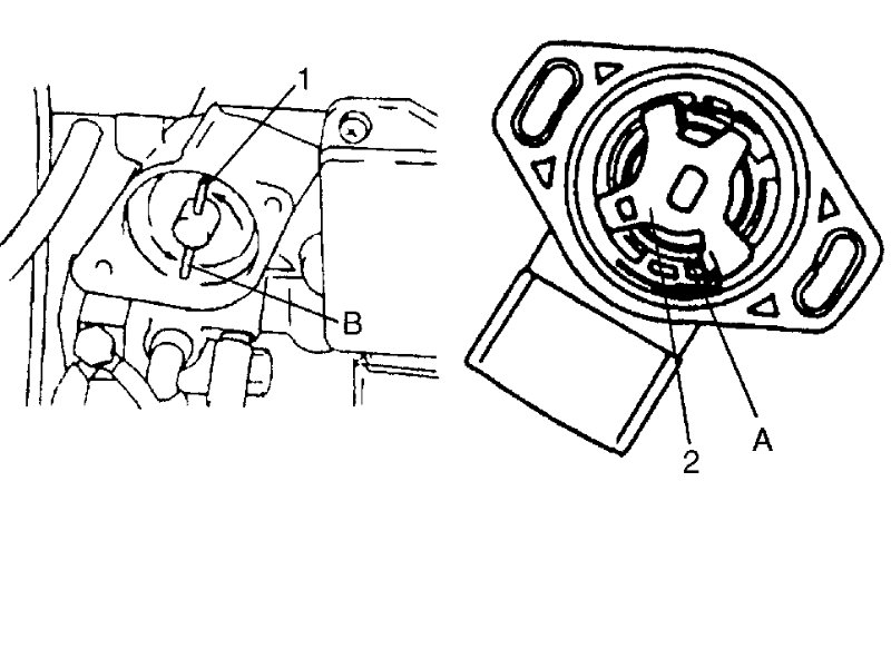 1) To install sensor, place it onto throttle body so that sensor pickup lever (2) can engage with throttle body lever (1).