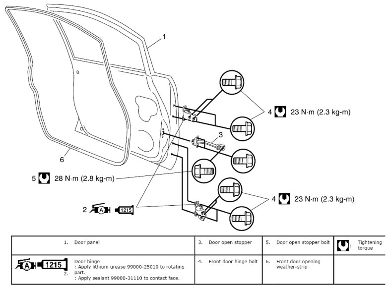 Door open stopper bolt (a): 28 N.m (2.8 kg-m, 20.5 lbf-ft)
