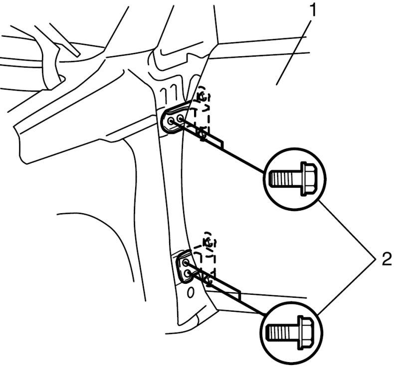 6. Remove door assembly (1) by loosening hinge mounting bolts (2).