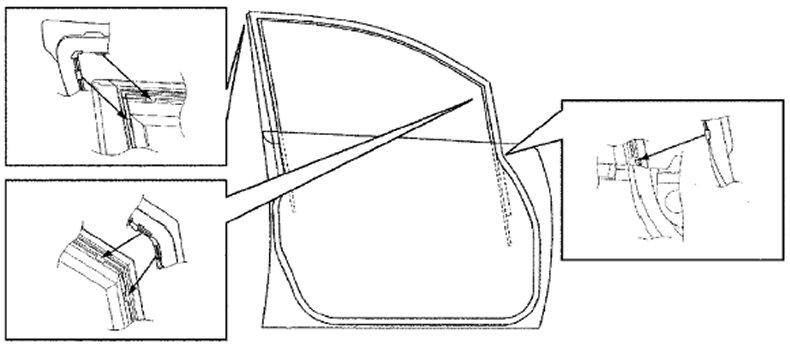 - When replacing door, coat replacement door inside with wax for proper anti-corrosion treatment. Refer to Sealant Application Areas:Wagon or Sealant Application Areas:Sedan.