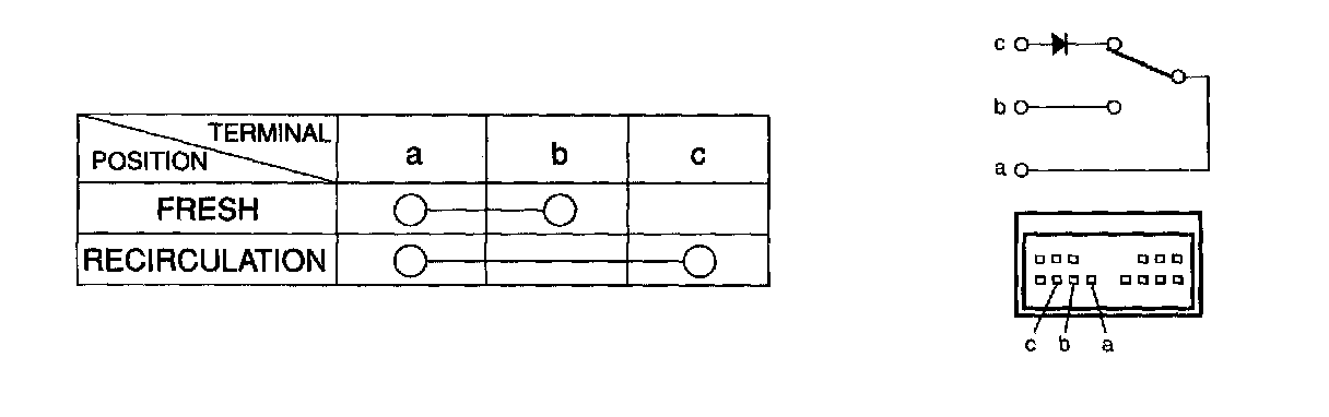 - Check air inlet selector for each terminal to terminal continuity. If check result is not as specified, replace.