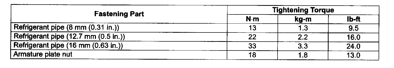 Tightening Torque Specifications:
