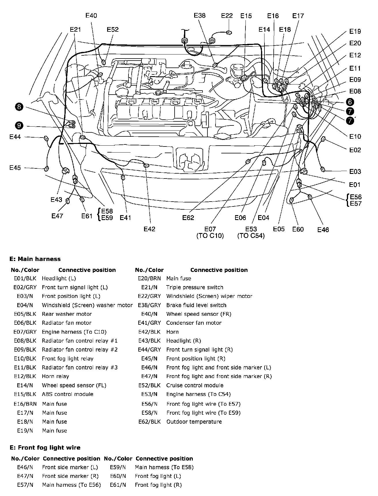 E: Main Harness, Front Fog Light Wire: