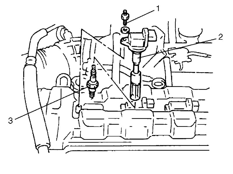 2) Remove ignition coil bolt (1), and then pull out ignition coil (2).