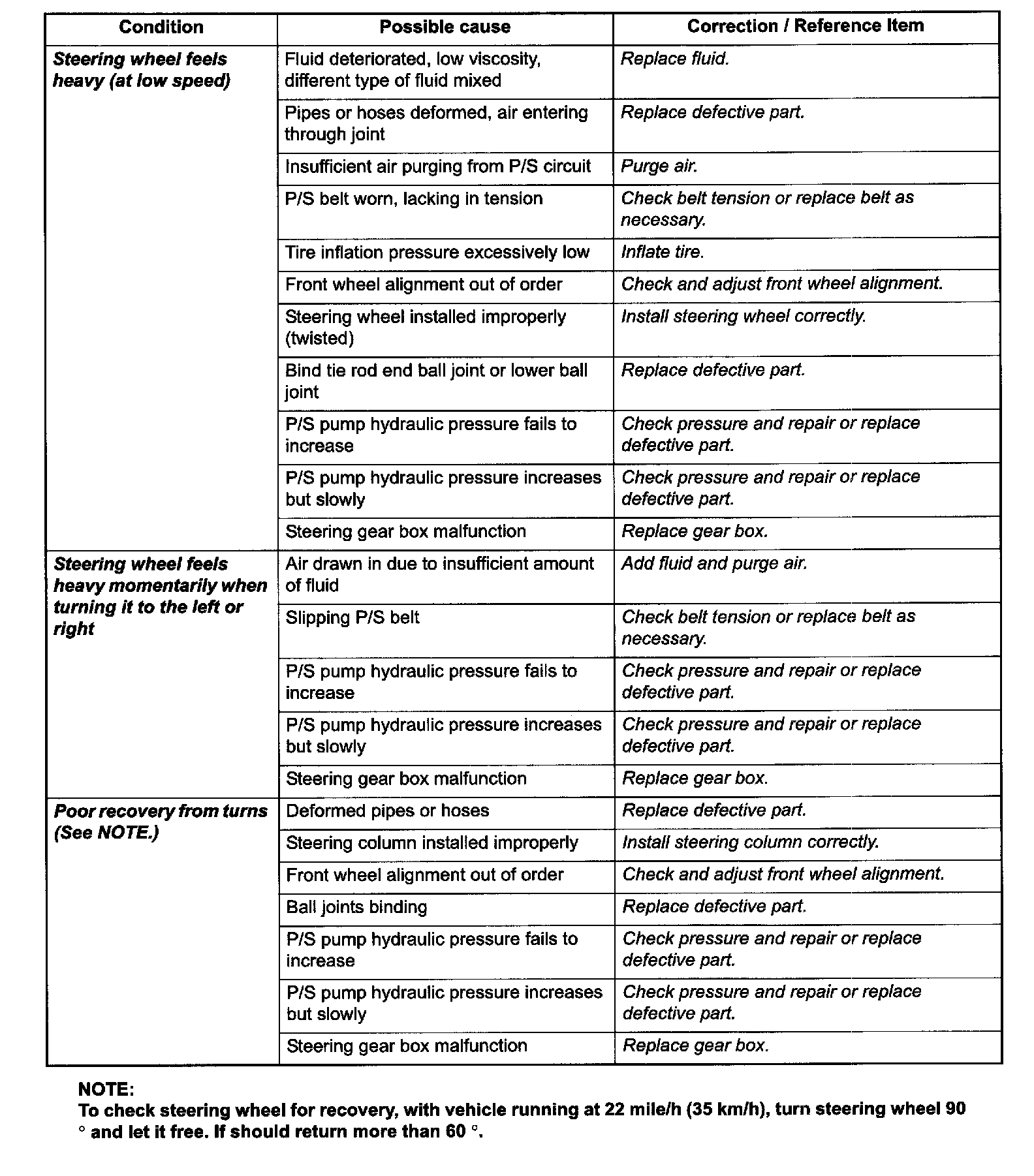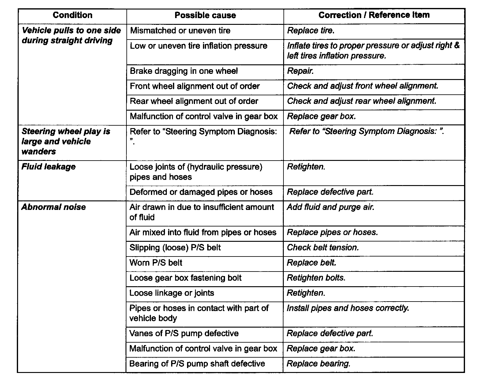 P/S System Symptom Diagnosis