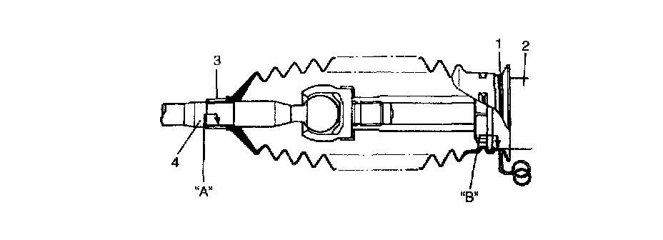 4. Position boot properly in grooves of gear case (2) and tie rod (4) and clamp it with wire (1) and clip (3). Wire should be new and should go around twice and be tightened with its both ends twisted together. The twisted ends should be bent in the circumferential direction. After this, check to ensure that boot is free from twist and dent.