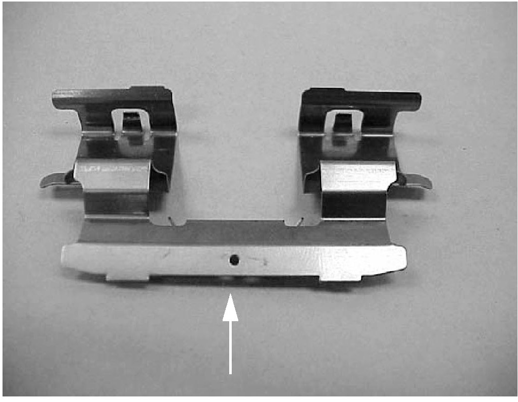 Existing caliper spring does not have hole in large flat tab of the caliper spring.