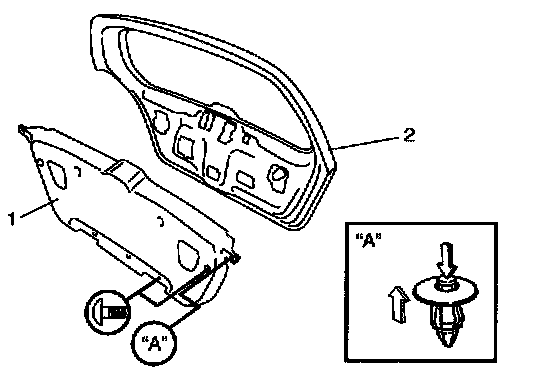 1. Remove door trim (1) from back door panel (2).