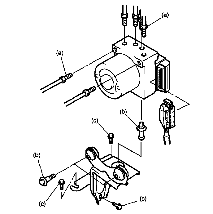 ABS hydraulic unit/control module assembly bracket bolt (c): 23 Nm (2.3 kgf-m, 16.5 ft. lbs.)