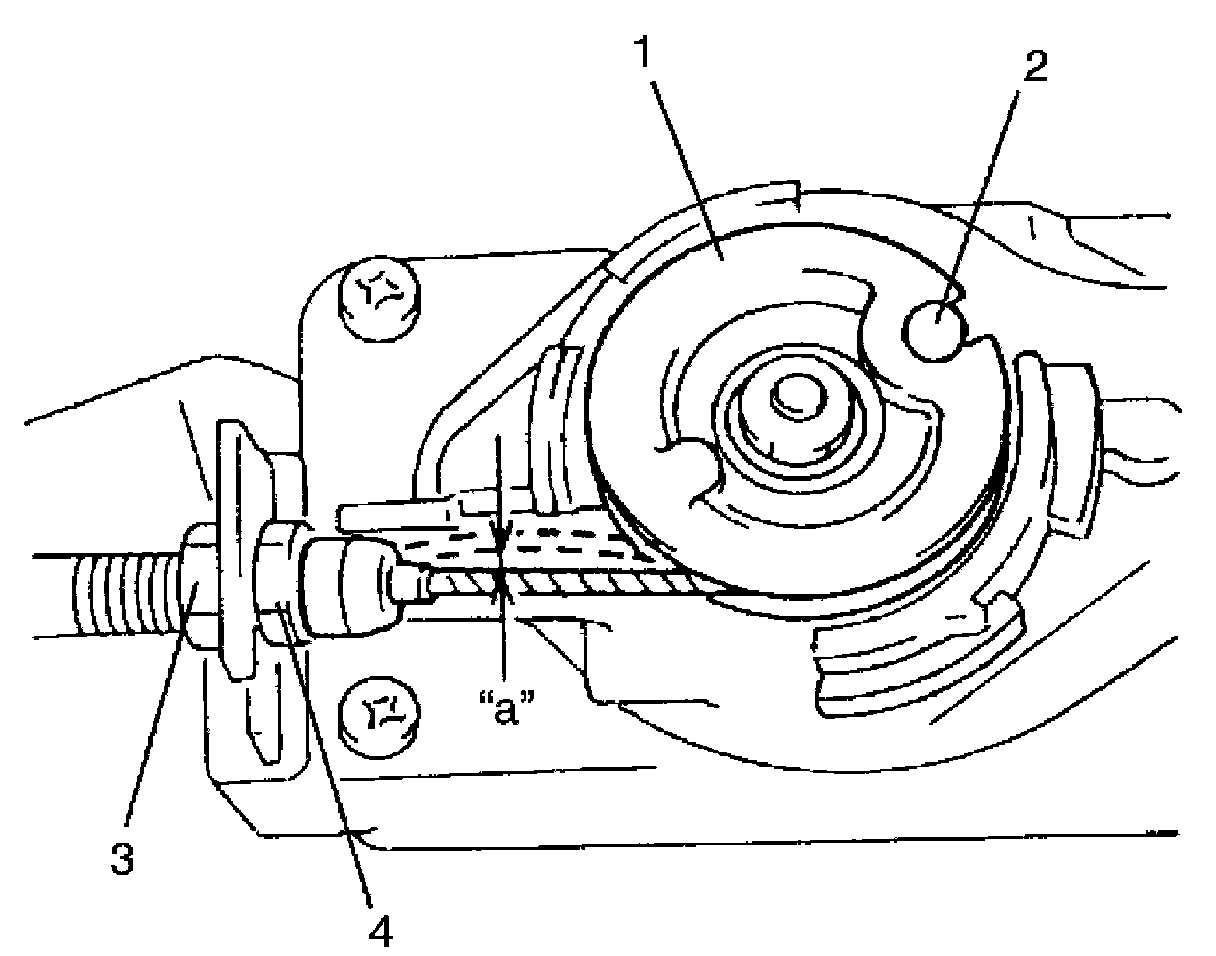 Cruise cable play "a": 1 - 2 mm (0.04 - 0.08 in.)