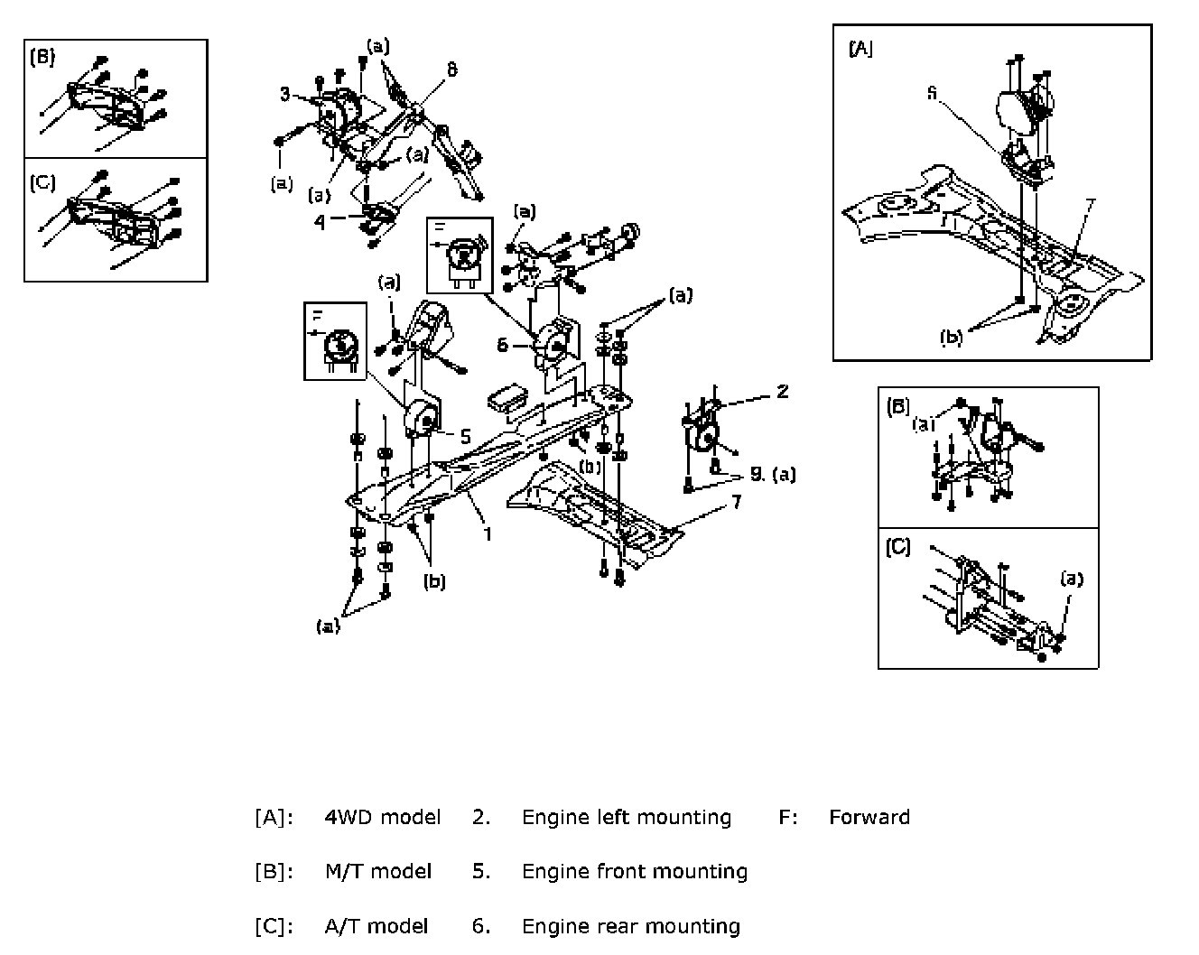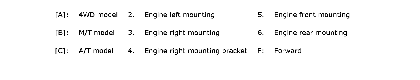 Engine front and rear mounting nuts (b): 45 Nm (4.5 kgf-cm, 32.5 ft. lbs.)