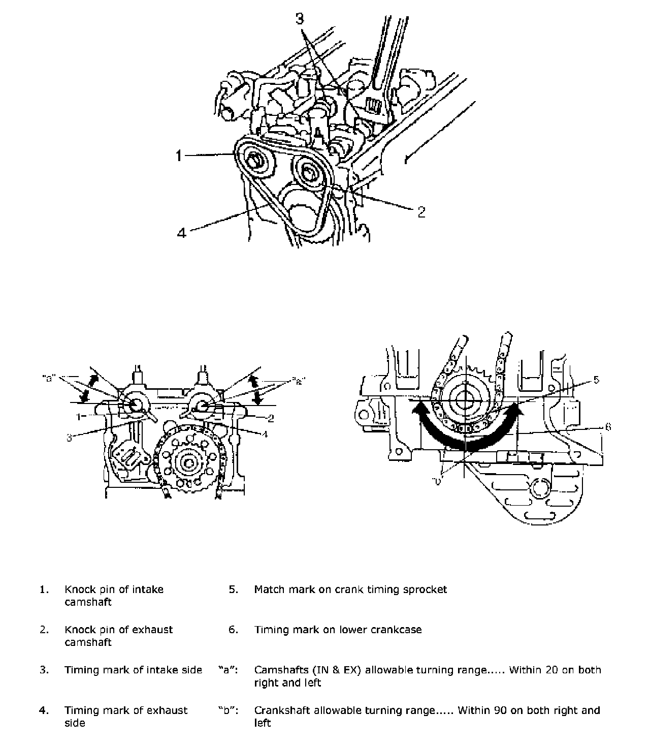 Check that timing marks of cylinder head and cylinder block are in match with match marks on sprockets respectively.