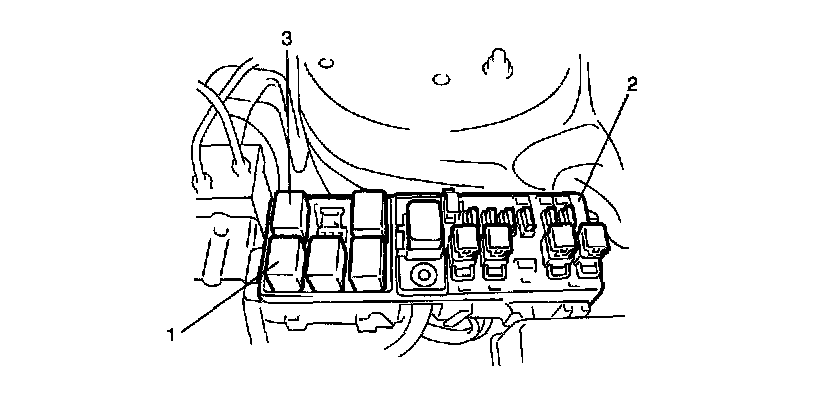2. Remove A/C compressor relay (1) or A/C condenser fan relay (3) from relay box (2).