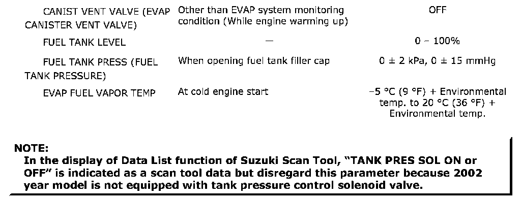 EVAP FUEL VAPOR TEMP (°C, °F)