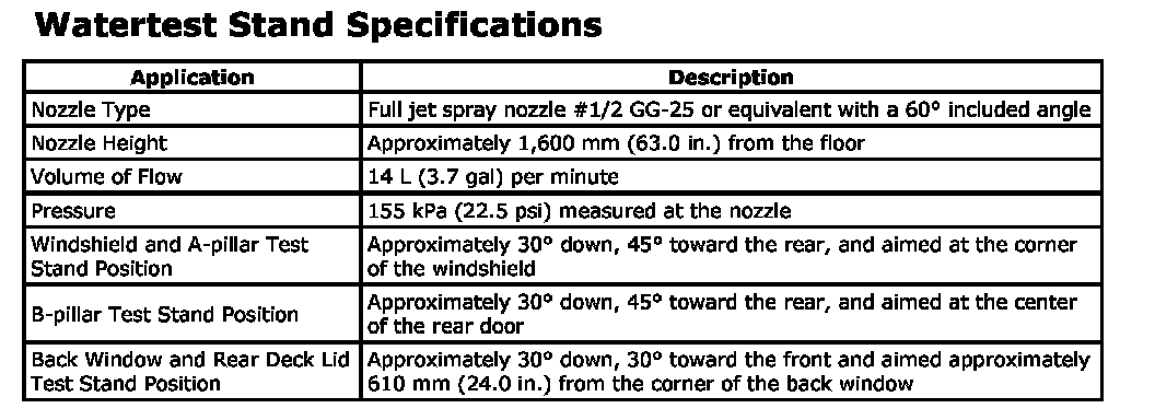 Watertest Stand Specifications