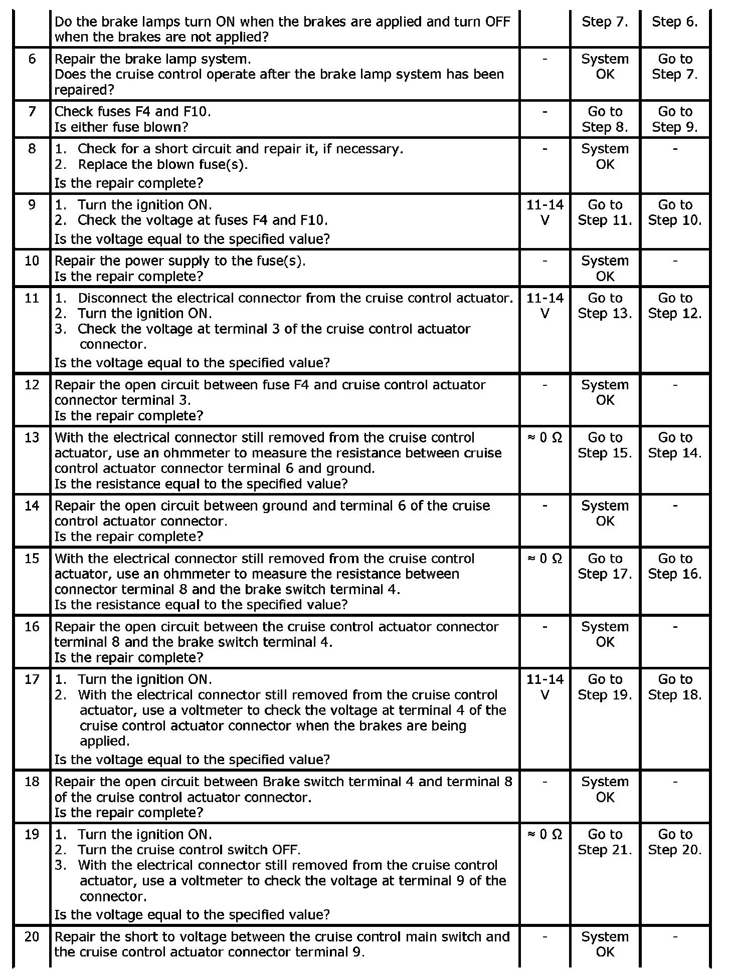 Cruise Control System Diagnosis: