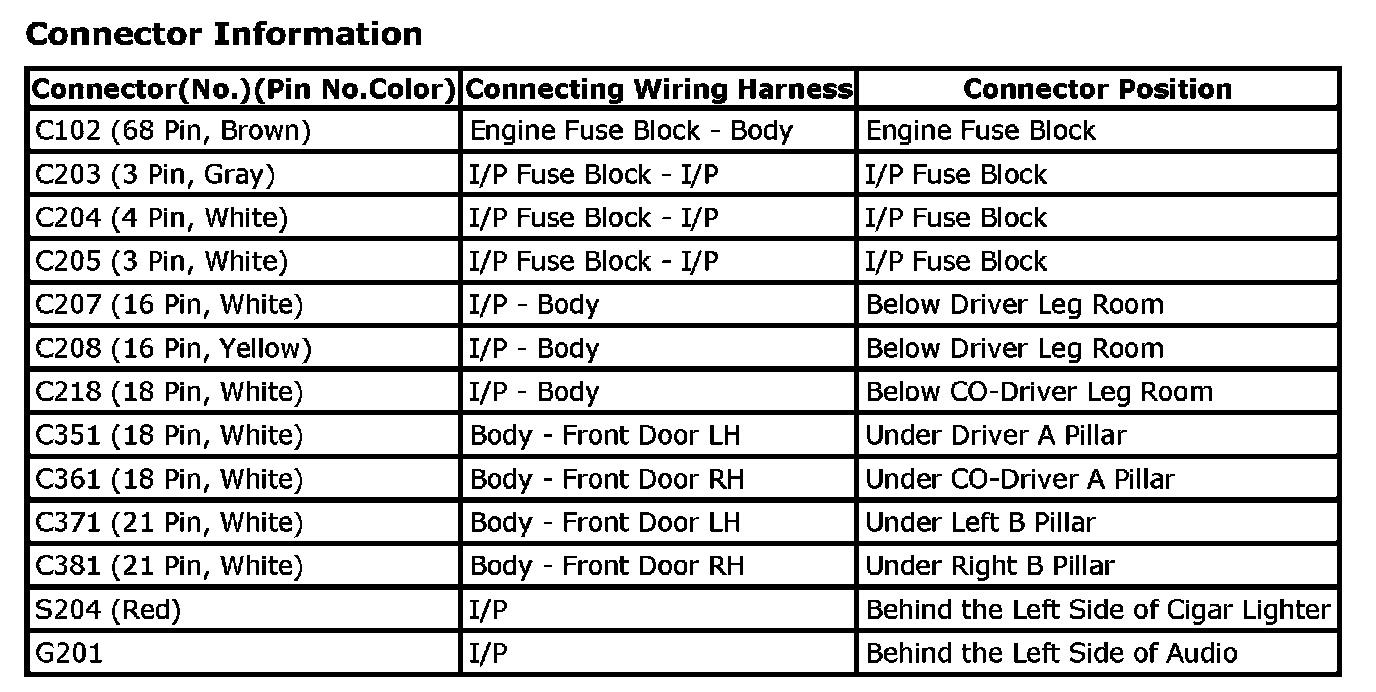 Connector Information