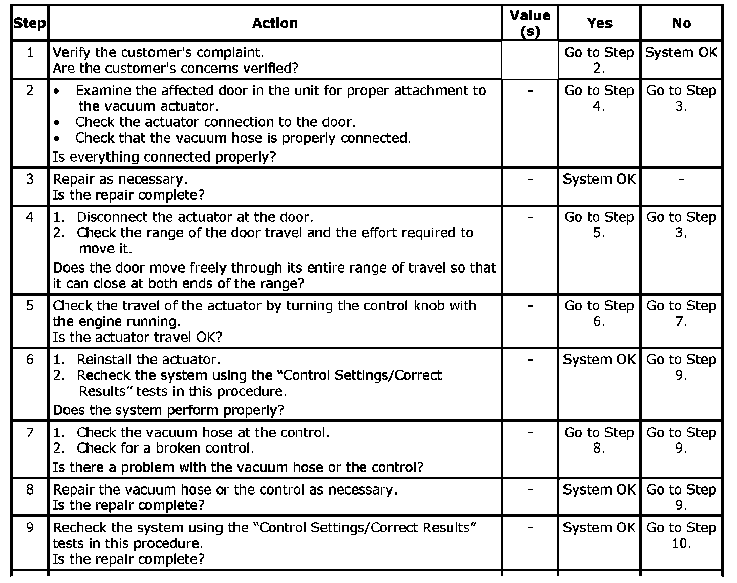 Improper Air Delivery or No Mode ShiftThis procedure provides a test of all functions of the heater/defroster unit.