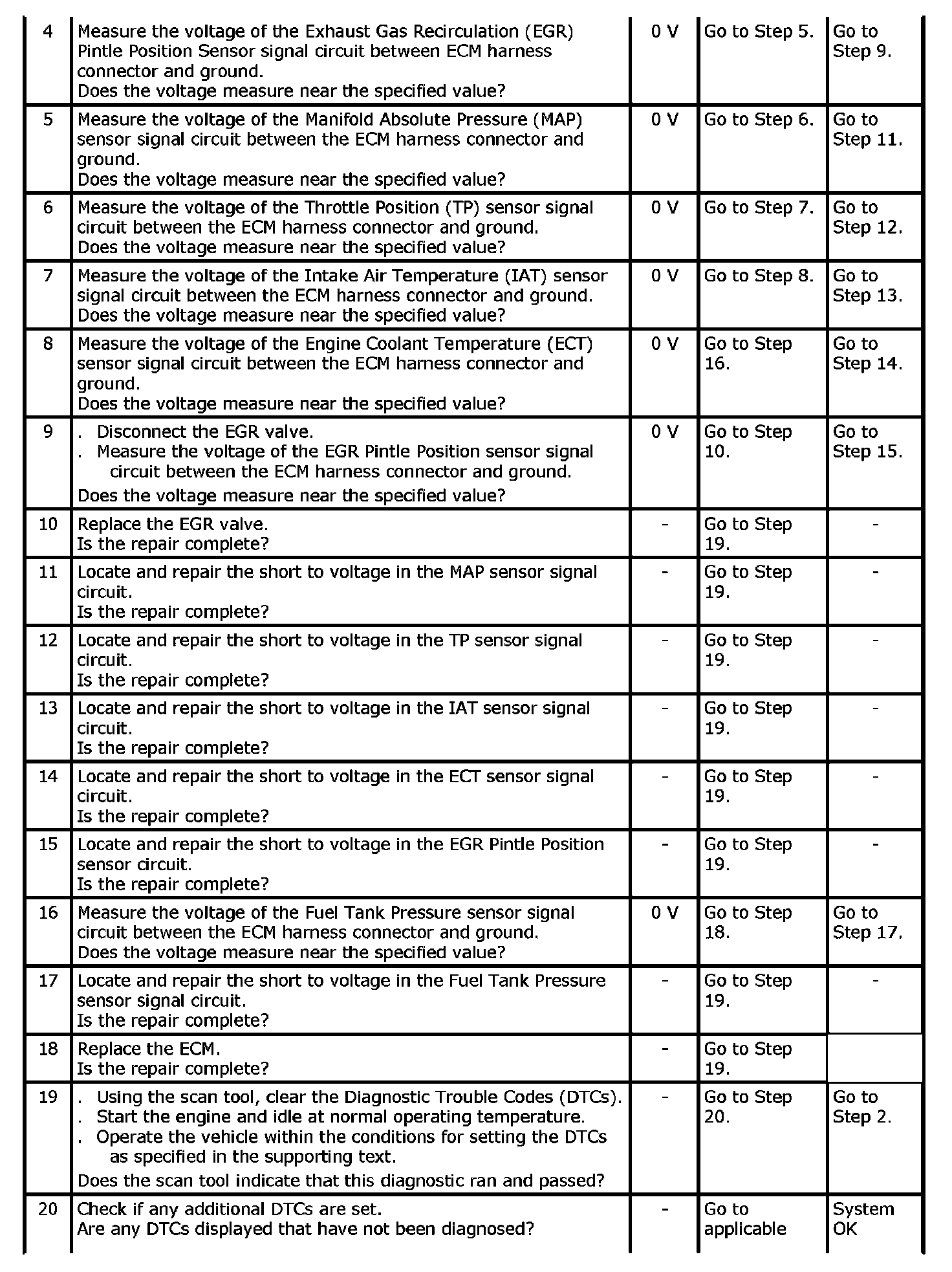 If a sensor input circuit has been shorted to voltage, ensure that the sensor is not damaged. A damaged sensor will continue to indicate a high or low voltage after the affected circuit has been repaired. If the sensor has been damaged, replace it.