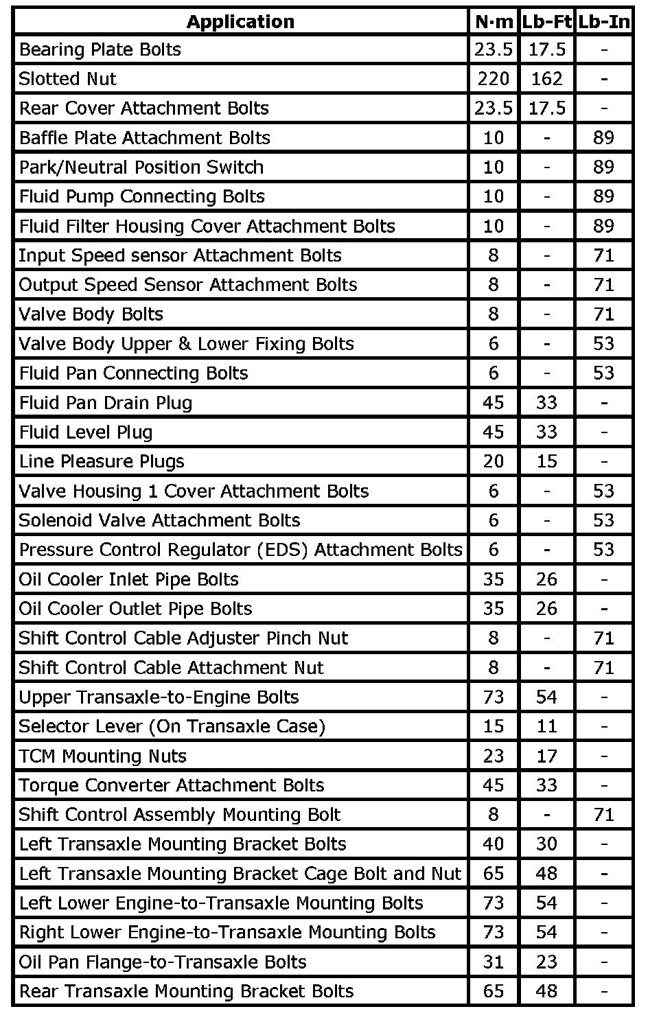 Tightening Torque Specifications