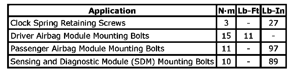 Tightening Torque Specifications: