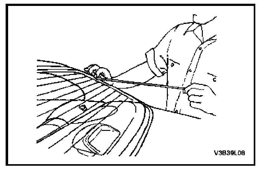 4. Using the glass sealant remover J-24402, cut the adhesive around the rear window.