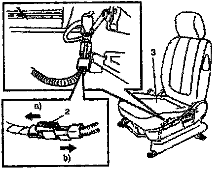 7. If equipped with side air bag (inflator) module, disconnect yellow connector of side air bag (inflator) module under front seat cushion (3).
