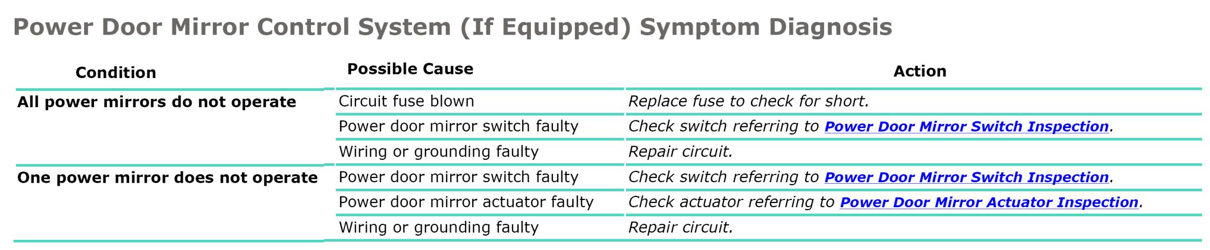 Power Door Mirror Control System Symptom Diagnosis