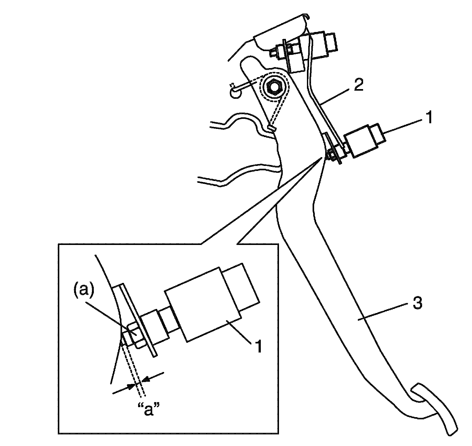 Clearance "a" between end of thread and clutch pedal bracket: 1.5 - 2.0 mm (0.06 - 0.08 in)