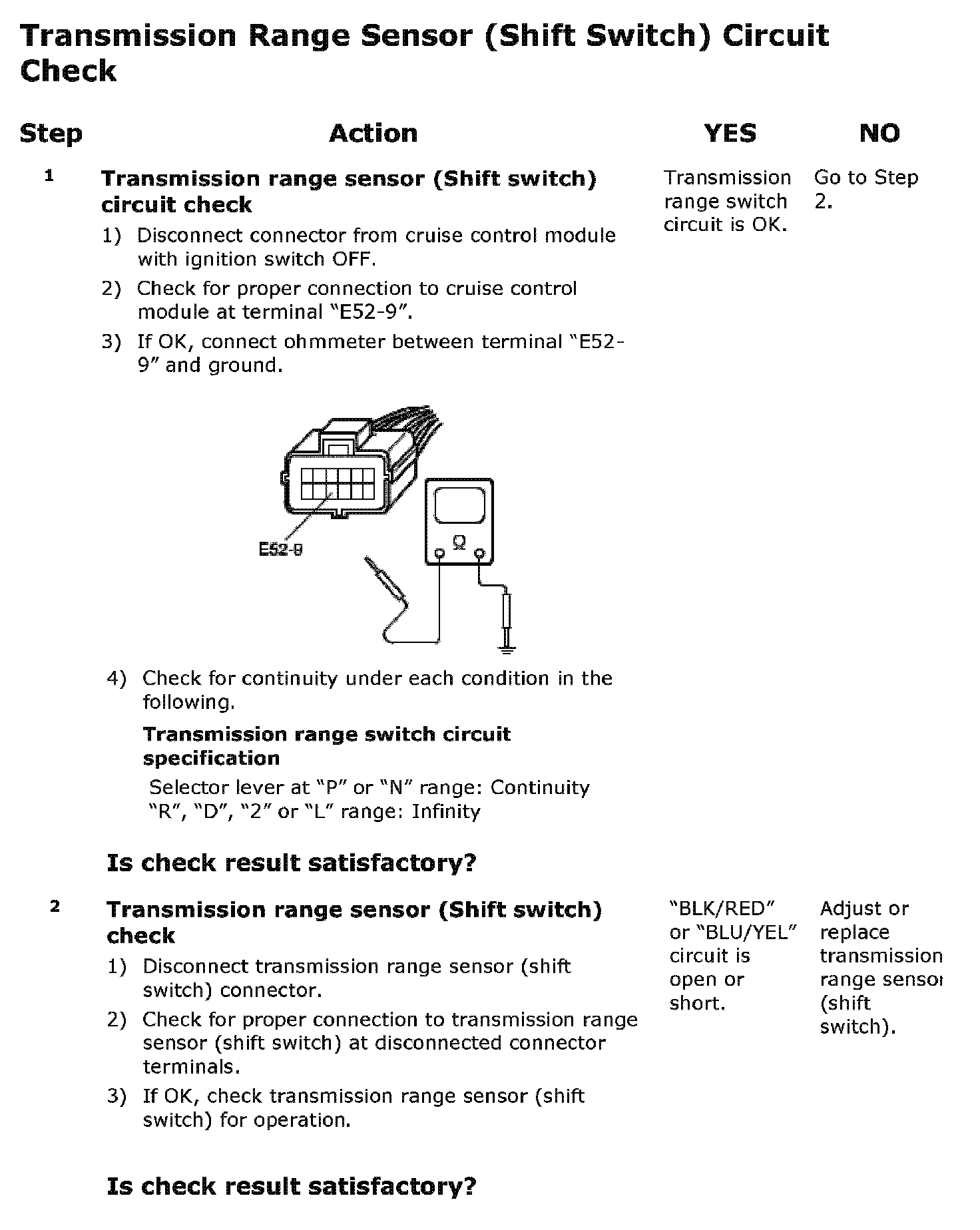 Transmission Range Sensor (Shift Switch) Circuit Check