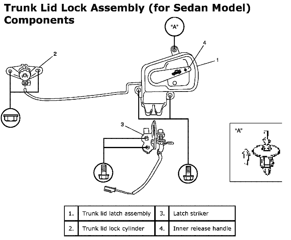 Trunk Lid Lock Assembly (for Sedan Model) Components: