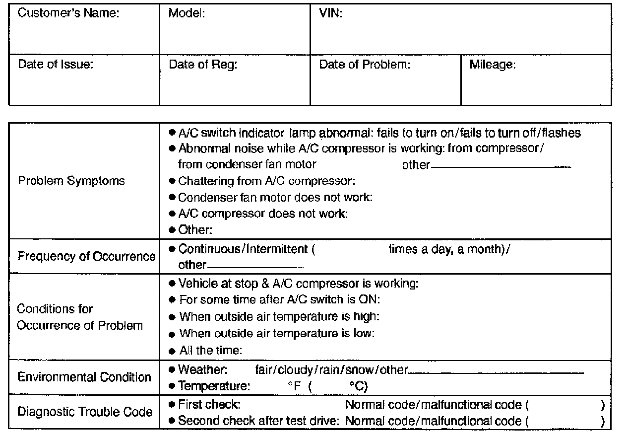 Check any part or system suspected to be a possible cause referring to A/C System Symptom Diagnosis: Manual Type.