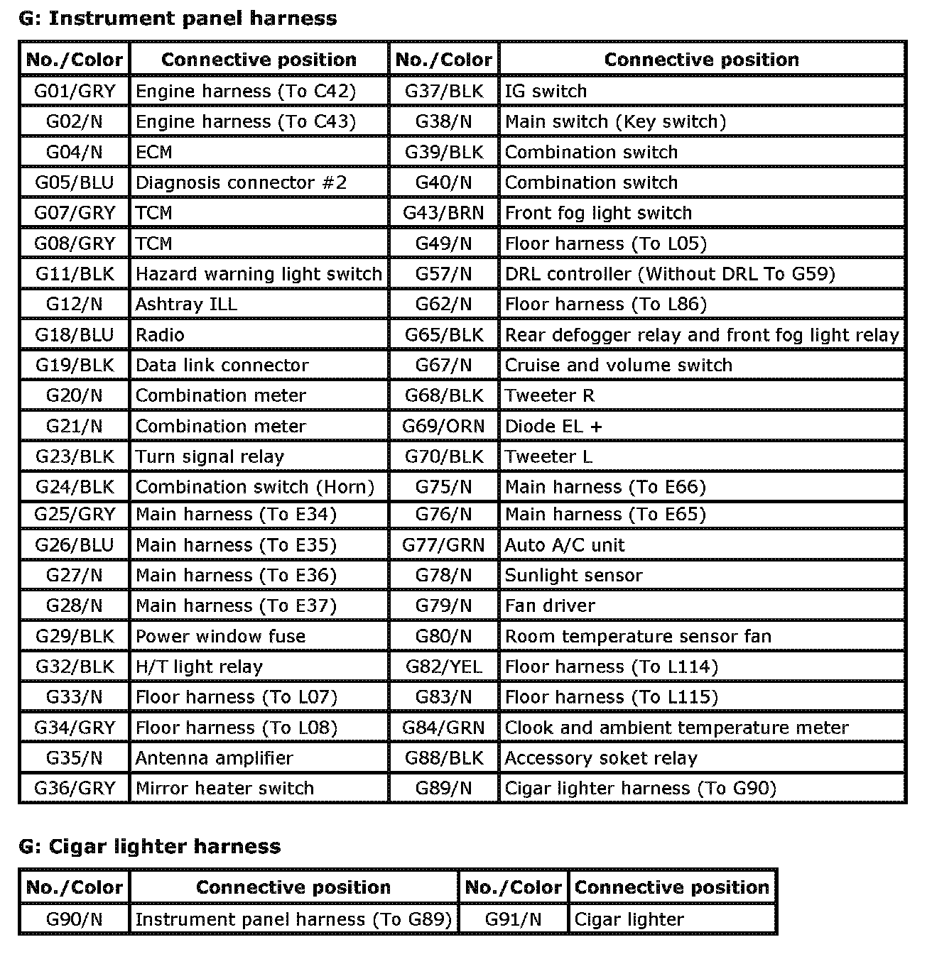 G: Instrument Panel Harness, Cigar Lighter Harness Index: