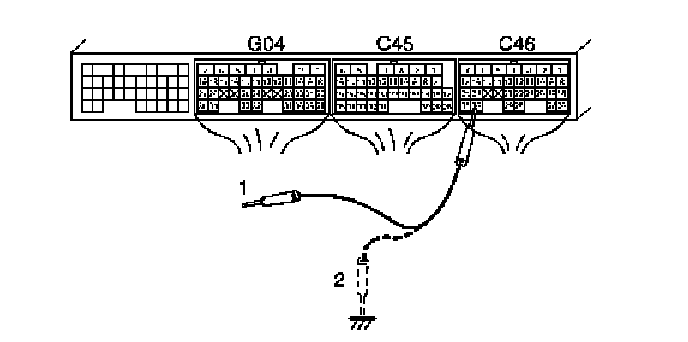 ii. Using service wire, ground C46-30 terminal of ECM connector (valve ON) (2) and unground it (valve OFF) (1).